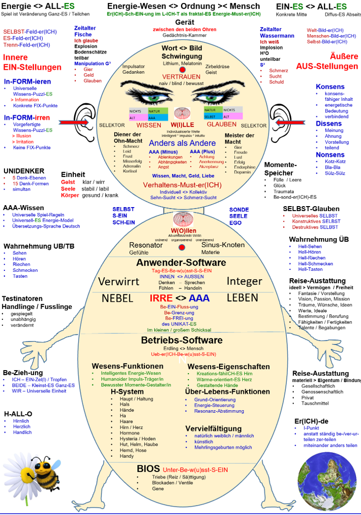 - Wissens-Bienchen, die wissen wollen, warum ES auf der Erde Energie-Wesen gibt, die S-ICH als Erdlinge hinter dem Ordnungs-Begriff Mensch verstecken!